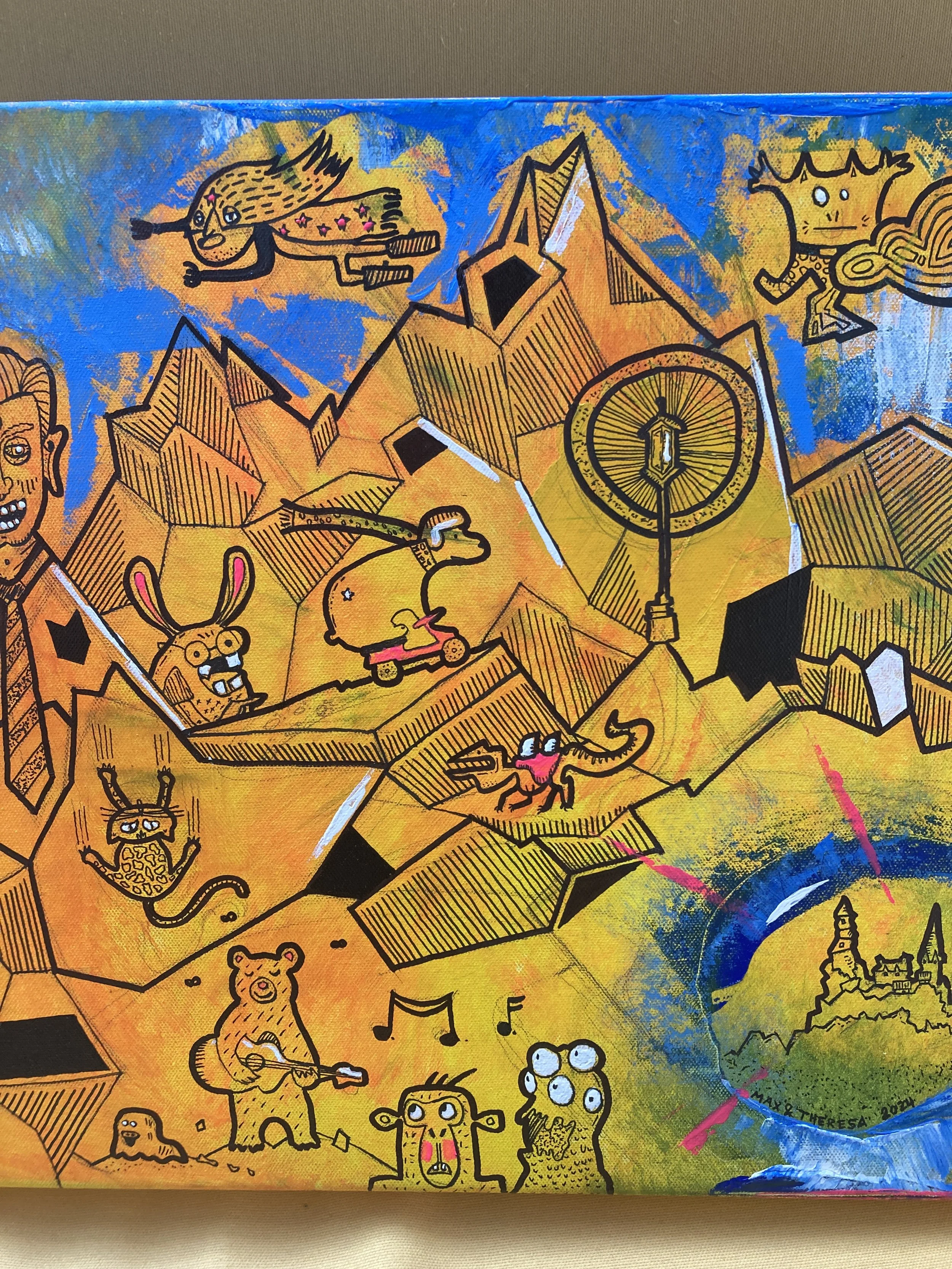 Die Zeichnungen entstanden als Collage verschiedenster Figuren in Zusammenarbeit mit Theresa Laber.